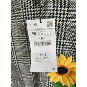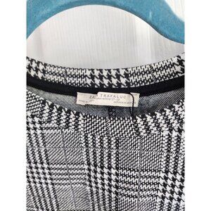 Zara Trafaluc Houndstooth floral embroidered long sleeve checkered slouchy top