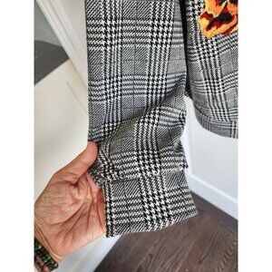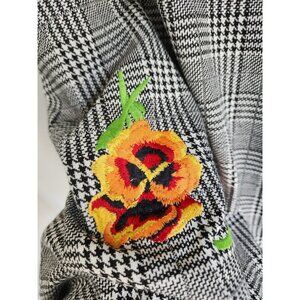 Art to wear Houndstooth black and white plaid top with embroidered appliques. Avant garde, Boho.