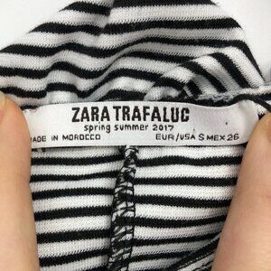 Zara Trafaluc NWT ruffle off shoulder black and white striped bodycon dress SP