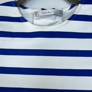 Zara Trafaluc Navy and White Striped Top