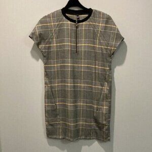 ZARA TRF women’s yellow retro plaid pullover cap sleeve crewneck mini shift dress