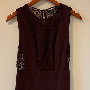 Zara Plum Purple Lace Mini Dress, Lace bodice with sheer side and back panels, keyhole button back closure; Size M.
