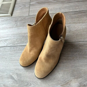 Zara Trafaluc Tan Suede Block Heel Ankle Boots