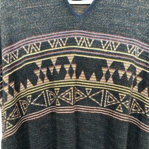 Zara Trafaluc hooded poncho, M, blue with southwestern pattern, fringe, Boho