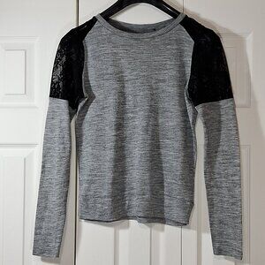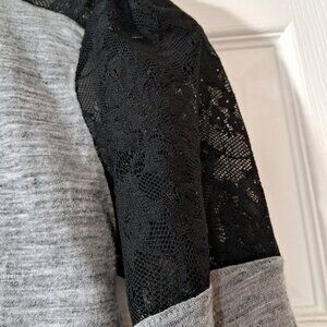 Zara Trafaluc sweater in pale gray cotton and black lace for women. The label for the washing method and composition has been cut off.