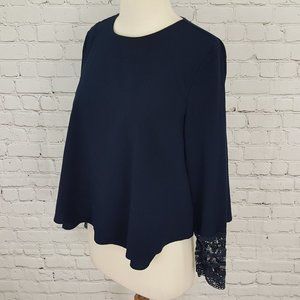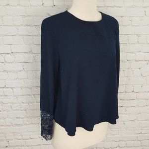 Zara Trafulac Top Blue Lace Blouse Pleat back M