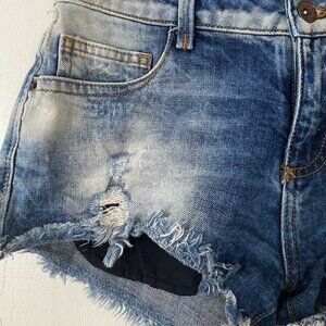 Tralafuc Zara premium wash denim short distressed paint splash Size 2