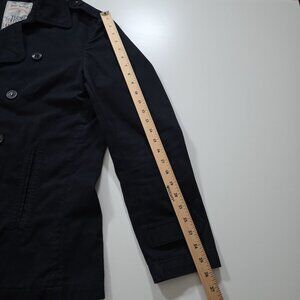 Zara Trench Coat Men XL Navy Double Breasted Vented Twill Cotton Unlined Pockets