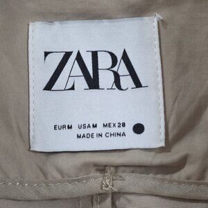 Zara Trench Coat Womens M Beige Belted Long Pockets Buttons Lightweight Preppy