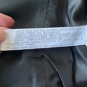 "Zara Black 70% polyester and 30% viscose Tuxedo in Xsmall size . I absolutely love this tuxedo: wore it to work, to date nights, to theaters, to everywhere pretty much! Zara doesn't make high-quality stuff like this anymore. Selling as I don't fit in it anymore :( Even though it's been worn a lot, it is still in a great condition.