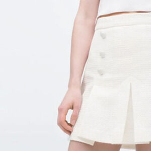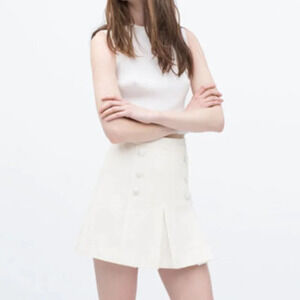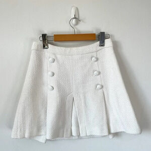 Zara Tweed 1960's Style Pleated Double Button Mini Skirt White Sz Small