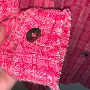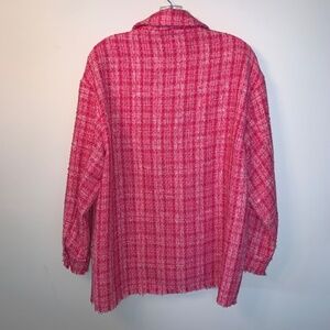 Zara Tweed Textured Woven Plaid Frayed Overshirt Shacket Shirt Jacket Pink S