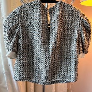 Zara Tweed Top with Pearl Buttons and Puff Sleeves