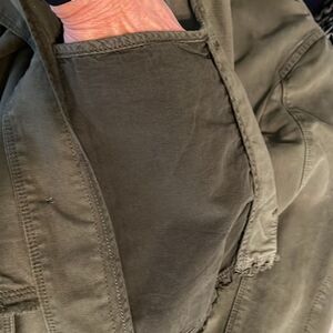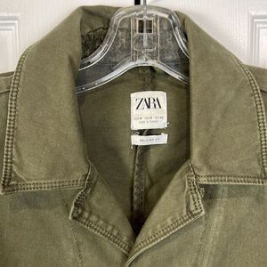 Zara Unisex Relaxed Fit Olive Green Frayed Hem 100% Cottage Jacket Size M