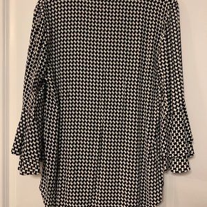 Zara black and white pattern flowy blouse with high-low cut and bell sleeves