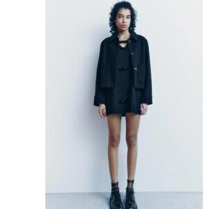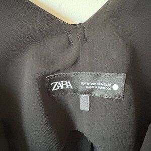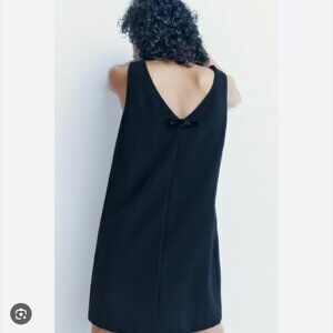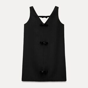 Zara Velvet Bow Sleeveless V Neck Mini Dress Black Size Medium