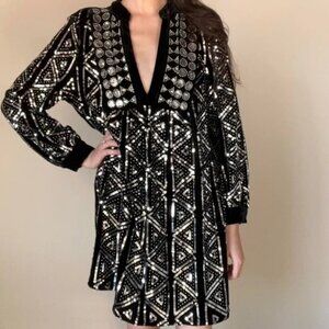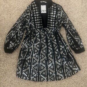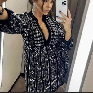 Zara Velvet Embroidered Sequin Short Dress NWT Black Silver Size Small
