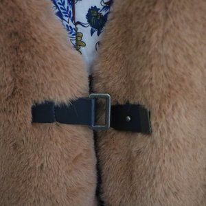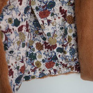 Cozy and warm Zara vest! Pretty floral detail pattern on the inside. Extremely soft, like your wearing a teddy bear! Worn twice, in perfect condition, it just didnt suit my particular style :)