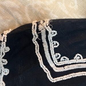 Zara Vintage Beaded Off Shoulder Tunic / Mini Dress, Black w/ White Beads, XS