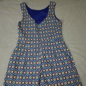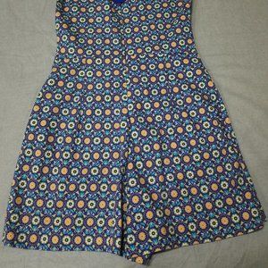 Super cute and sexy romper. Has a very vintage look and feel. Cut out under bust shows some skin. Looks like a mini dress from the front but shorts in the back. Waist is 13" laying flat, bust is 15" laying flat. Fits xs-s.Not much give as the exterior is 100% cotton. Please let me know if more measurements are required!