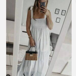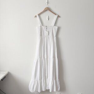 Zara Voluminous Cotton Poplin Maxi Dress NWT Smocked White Size Medium