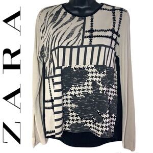 Zara W/B Collection Black/Beige Contrast Top T-Shirt Size S