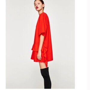 Zara W/B NEW Oversized Poplin Ruffles Dress Lightweight Boxy Tunic Cotton Shift