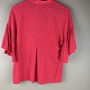 ZARA WOMAN Red Patterned Blouse with Ruffled Flowy Short Sleeves