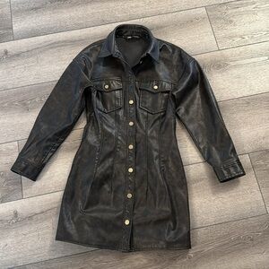 Zara Washed Faux Leather Dark Brown Mini Dress Medium 8741/251