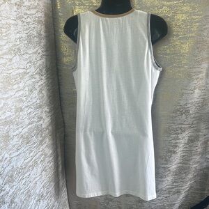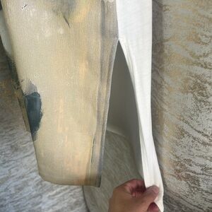 - Zara Small V-Neck Watercolor Print Flowy Tank. Watercolor print on front panel, white back, side slits.