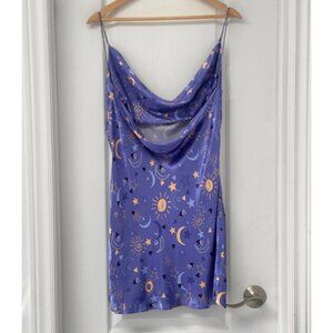 Zara - Whimsigoth Celestial Sun & Moon - Satin Effect Mini Dress Blues/Purple