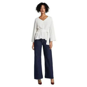 Zara White Blouse Top With Belt V-Neck Flowy Size Small