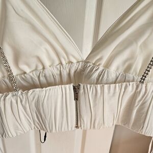 Elegant white bra with shimmering silver straps. Perfect for a chic look.