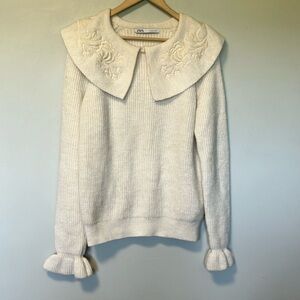 This elegant white sweater features beautiful embroidery, perfect for adding a touch of sophistication to your wardrobe. Ideal for any occasion.