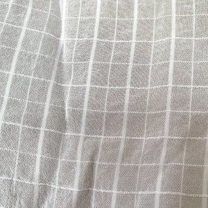 The front is ruched fabric and the back is more sheer with a checked pattern. There is one button that closes at the neck at the back