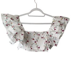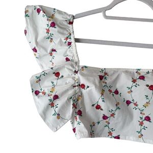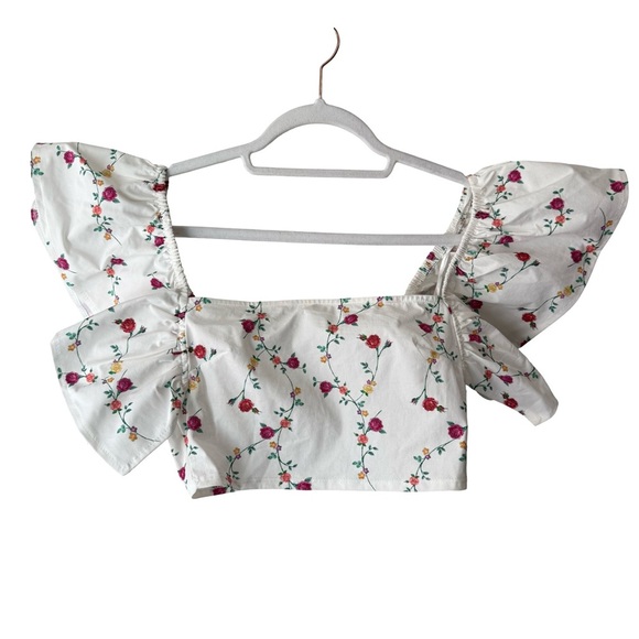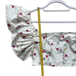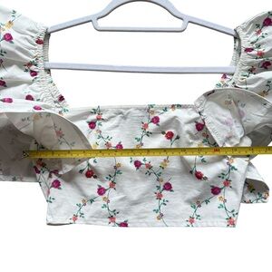 Keywords: Zara puff sleeve top, floral crop top, romantic blouse, cottagecore summer top, square neck shirt, Zara size S