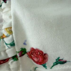 • Color: White with multicolor floral print (pink, red, green, yellow)