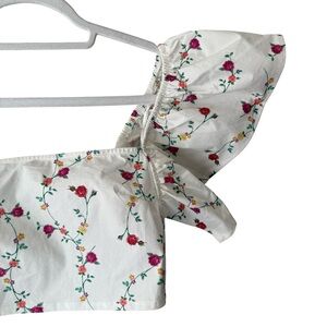 Zara White Floral Blouse with Red Accents Size S Cottagecore Boho Romamtic