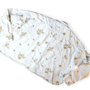 Zara overshirt / denim jacket with contrast embroidery. Collared overshirt with cuffed long sleeves, featuring front patch pocket, gold floral embroidery detail and frayed hem. Oversized, cropped and boxy fit. A great statement piece!
