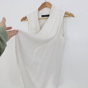 This elegant Zara waterfall vest in crisp white is the perfect layering piece to elevate any outfit. Its versatile, sleeveless design makes it ideal for dressing up or down, adding a polished touch to your wardrobe.