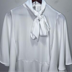 Zara White Peplum Blouse Batwing Sleeve Necktie Bow Size Small
