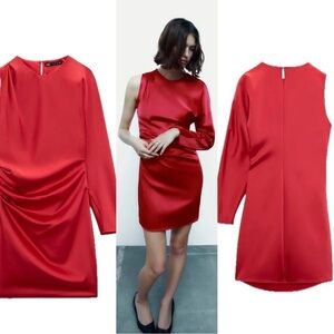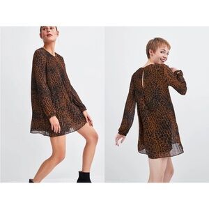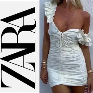 Zara White Puff-Sleeve V-Neck Mini Dress