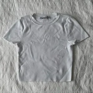 Zara White Ribbed Cropped Tee
