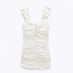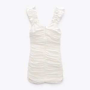 Elegant mini dress with ruffled details. Features a fitted silhouette and off-shoulder design. Perfect for a chic look.