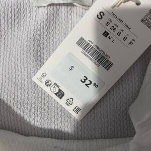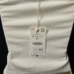 Chic white strapless top with layered ruffles. Perfect for a stylish look.