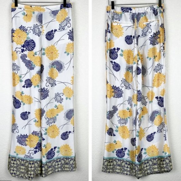 Zara White Satin Floral Wide Leg Pants Size Medium but fits small
