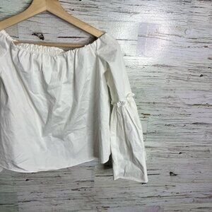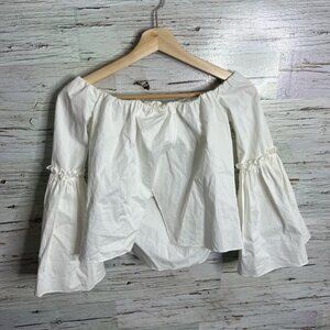 Zara White Smocked Bell Sleeve Blouse