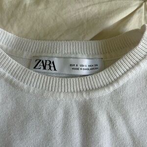 This elegant white tank top from Zara features a classic sleeveless design and a clean, fitted silhouette. Crafted from a soft knit fabric, it offers both comfort and style, making it a versatile addition to any wardrobe. This item is free from rips! It has only been worn a handful of times and is ready for its new life in your closet!! Comes from a smoke free home, washed on delicate and dried on low.