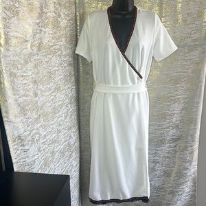 Zara White Wrap Short Sleeve Dress With Contrast Trim Size S
