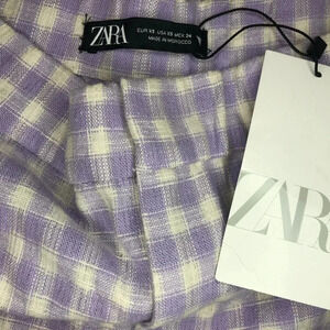 Textured linen-look pants in a light purple and white gingham pattern from Zara. New with tags.